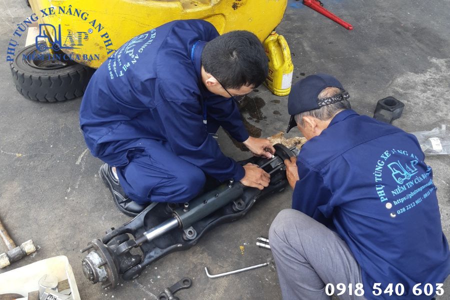 - Cầu xe nâng trước sau: Trục cam, trục may ơ, may ơ, phốt ắc lái, khung cầu sau, bạc đạn các loại, bộ ắc khớp nối rô-tuyn, khớp nối rô-tuyn, bạc đạn, bu ang kẹp mâm, tắc kê bánh trước, mâm bánh trước, phốt cầu các loại, nhông bánh ang hành tinh, nhớt cầu trước.