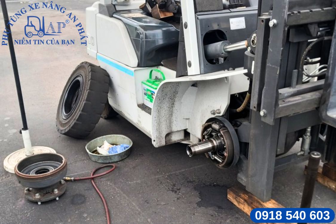 Hệ thống phanh và tay lái ảnh hưởng trực tiếp đến an toàn vận hành. Đây là nhóm bộ phận cần được kiểm tra theo định kỳ 250 – 500 giờ vận hành.