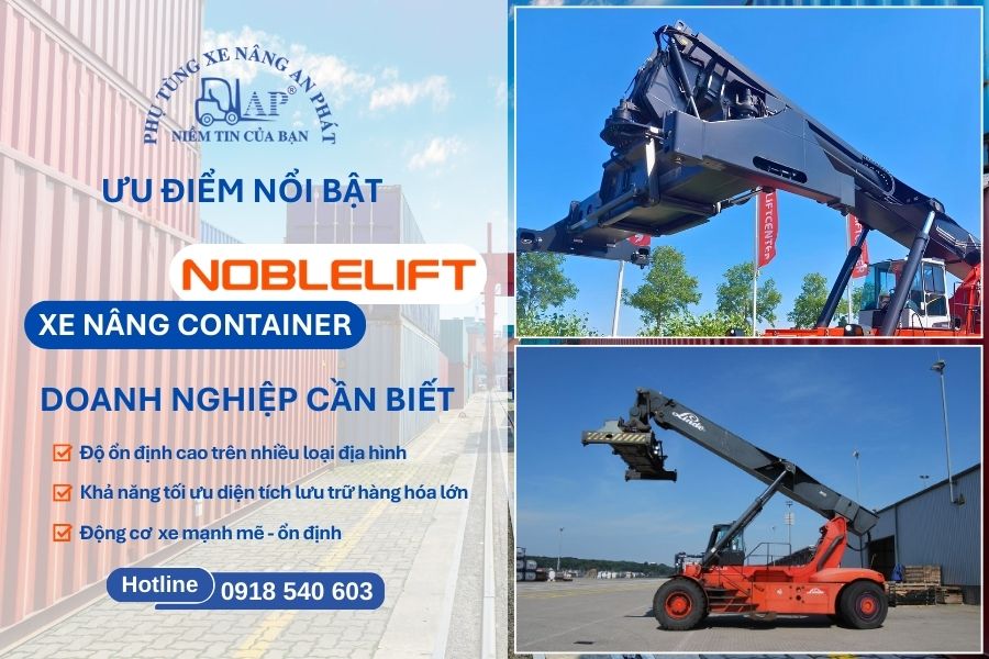 An Phát hiện là đơn vị phân phối chính hãng các dòng xe nâng container Noblelift với đa dạng tải trọng, đáp ứng đầy đủ nhu cầu từ bốc xếp container tại cảng biển hay khu công nghiệp.